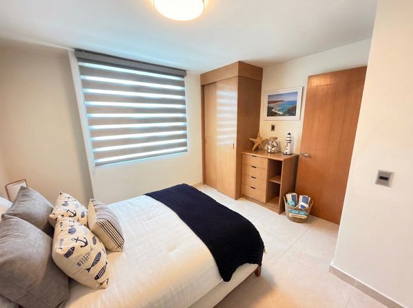 Te ofrece amplios departamentos de 2 y 3 recámaras con Casa Club, área de snack bar, área de gimnasio, áreas de juegos y albercas.